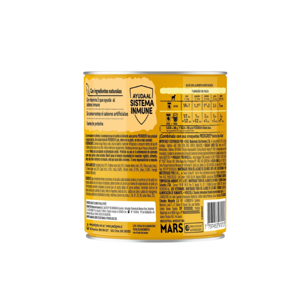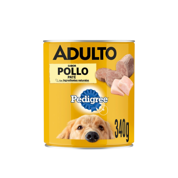 Alimento humedo en paté, de marca Pedigree, lata 340g.